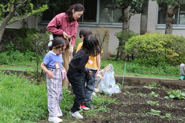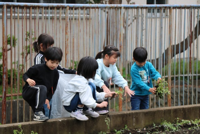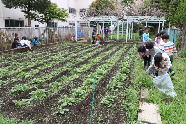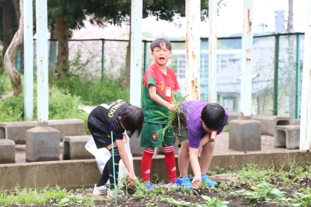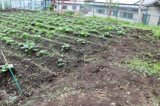 そこで2年生が、畑の周りの雑草抜きを頑張りました。おいしいジャガイモがたくさんできるといいですね。収穫したジャガイモは何に使いましょうか?