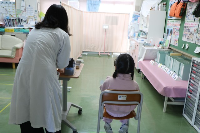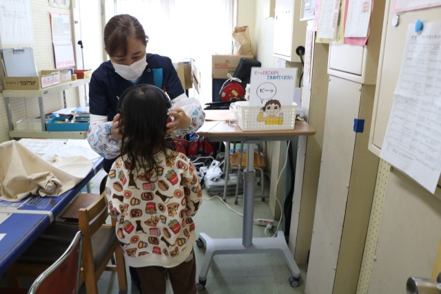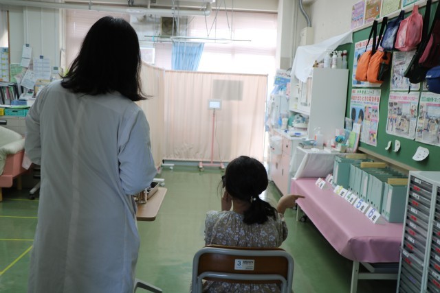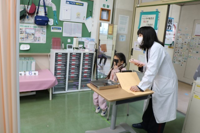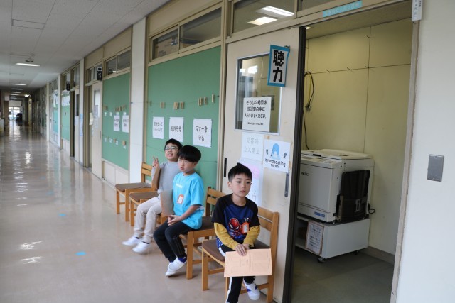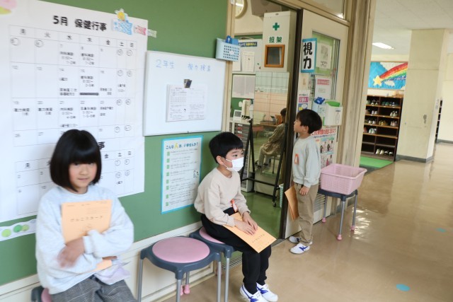 4月から春の健康診断が始まっています。今日は2年生の視力・聴力検査です。廊下で待つ様子が、さすが2年生!静かに中の様子もうかがいながら子どもたちだけで待つことができていました。