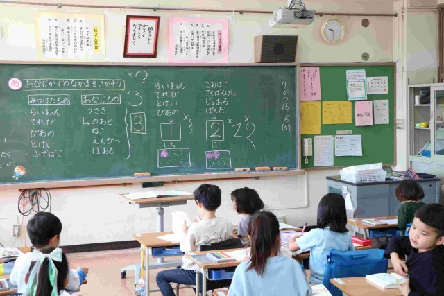 1年生の様子です。入学して1週間が過ぎ、ひらがなの学習や数の学習、図書の時間も始まり、1年生らしいお勉強の様子が見られるようになりました。