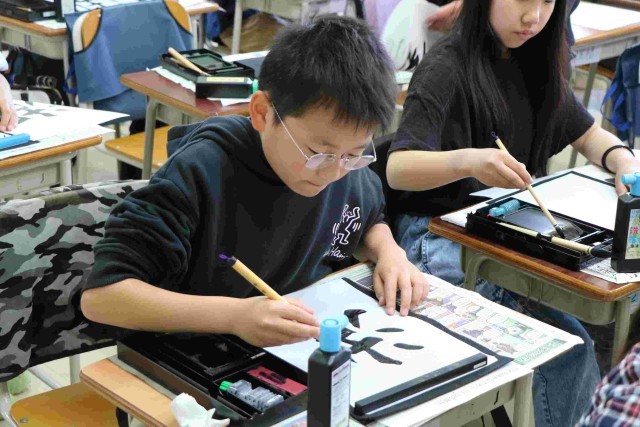 6年生になって最初の習字でした。「湖」の字をそれぞれの部分の大きさやバランスを考えながら集中して書きました。