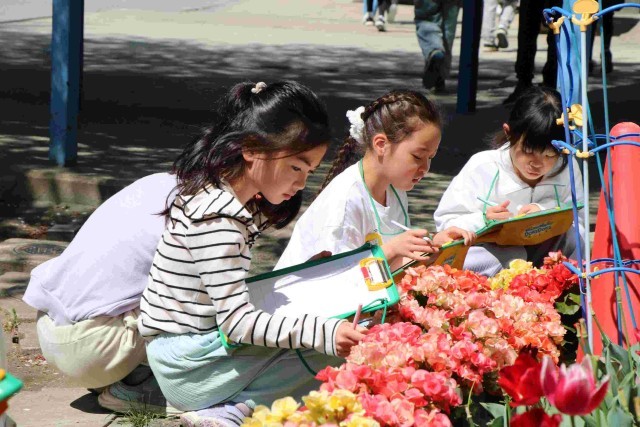 この前は春を見つけて次々に写真に撮っていましたが、今日は1つをじっくり見て観察していました。すてきな花を観察する子は多かったですが、むしろ花や茎にいるアリなどの虫に興味を示す子も。それも春ですよね。