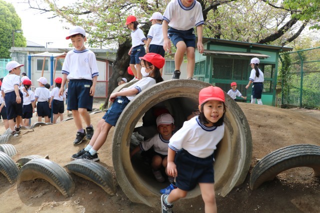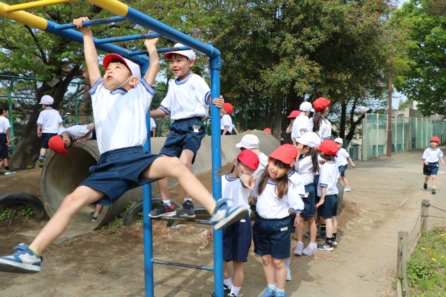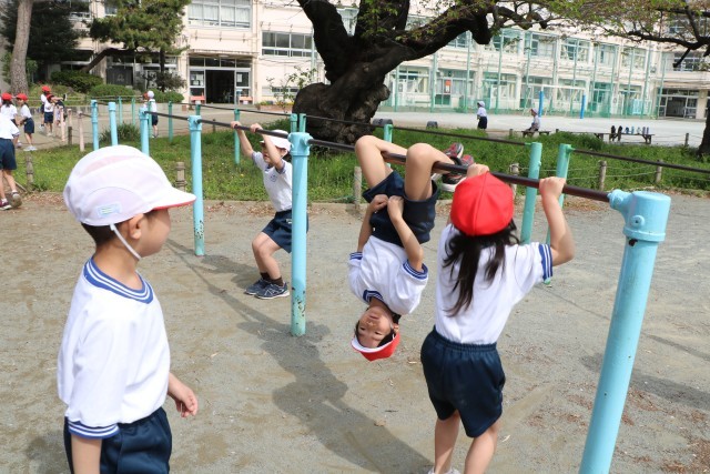 1年生学年体育の様子です。遊具で遊びながら、校庭のきまりを確認したので、いよいよ明日は1年生校庭デビューの予定です。