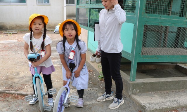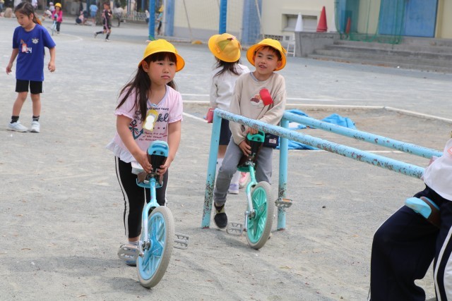1年生の様子をちょうど見に来てくださった砧幼稚園の園長先生を見つけて、大喜びで一駆け寄り、お話をしたり一輪車に乗るところを見ていただいたりする子たちもいました。