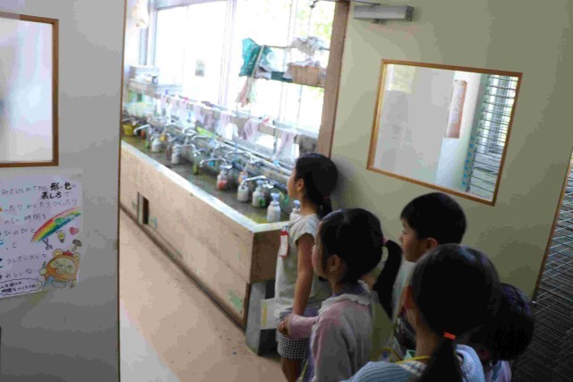 ほっとルームの前、図書室、図工室、いろいろな教室へ2年生が連れて行ってくれます。