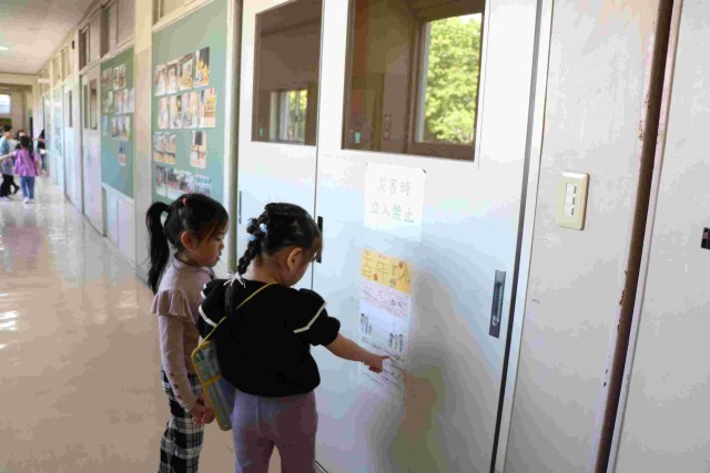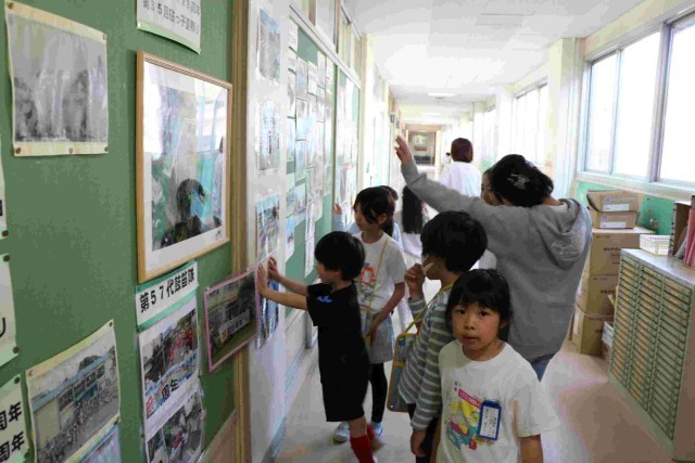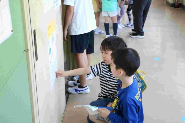 行事の写真が貼られているのを1年生が見ていると、「今度やるからね」と声をかけてくれた高学年の子もいました。