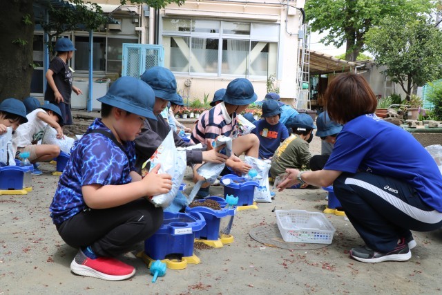 3年生理科の様子です。ホウセンカの種をまきました。友達どうし協力して活動していました。
