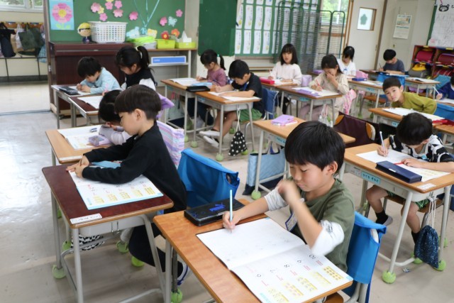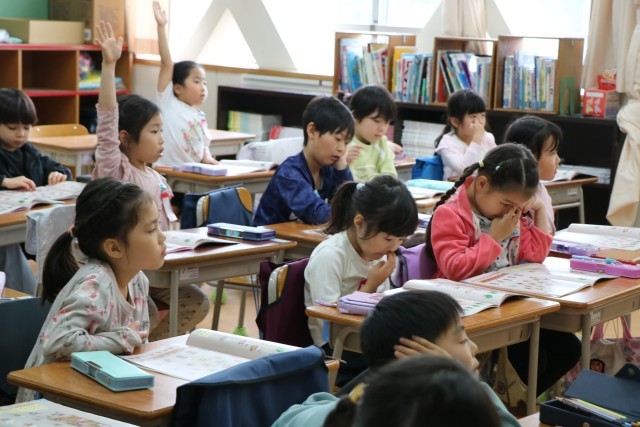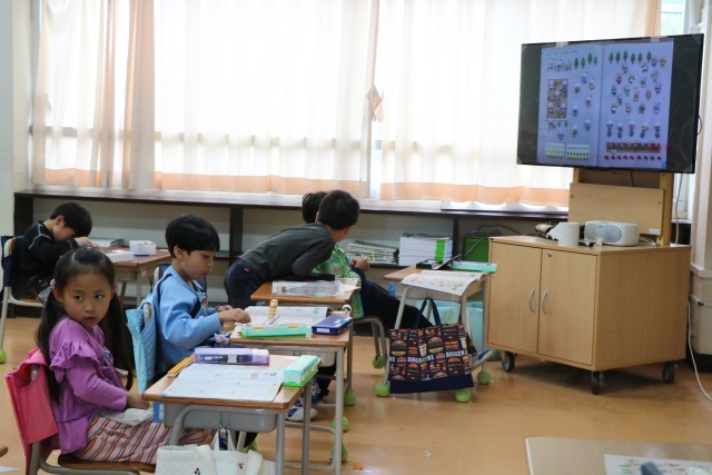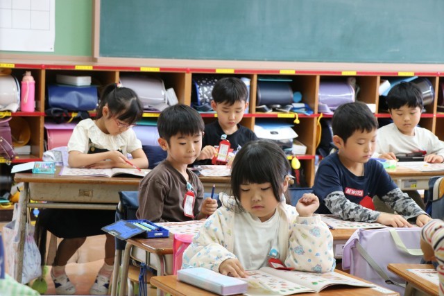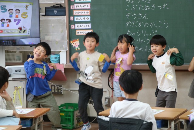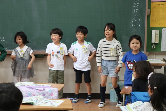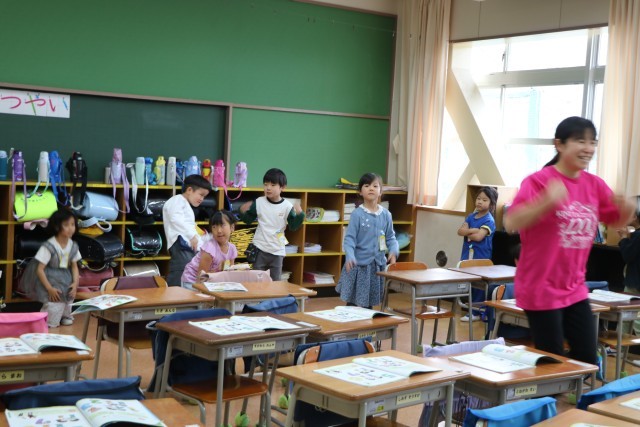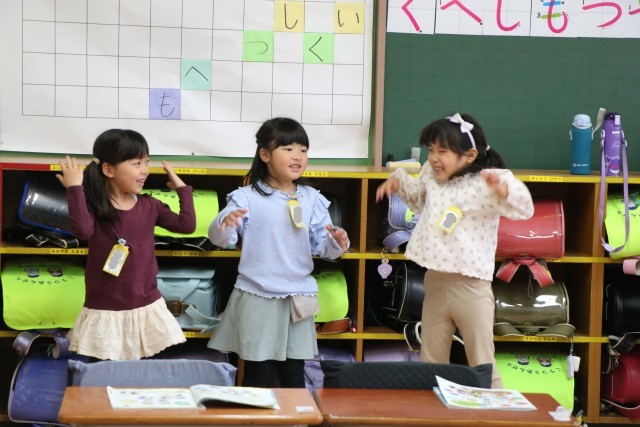 1年生、音楽や算数の学習の様子です。音楽は歌に合わせてみんなで一緒に体を動かすことがとっても楽しそうです。