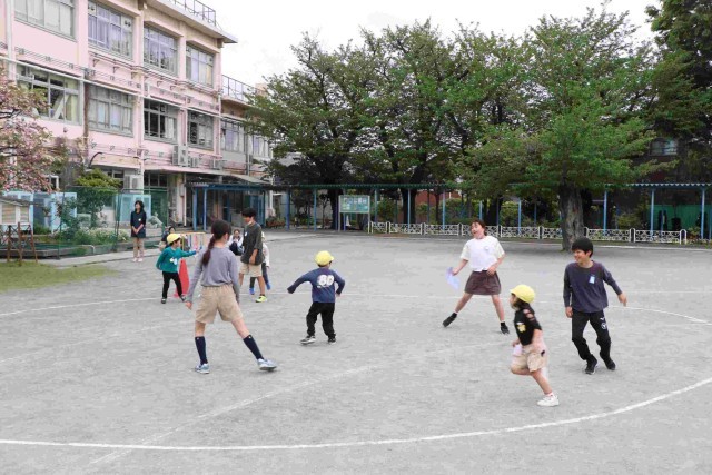 腰をかがめて高さを合わせてあげたり、「だるまさんが転んだ」で止まるときに「今、止まるよ」と教えてあげたり、園児の立場に立って気遣ってあげている姿が優しかったです。