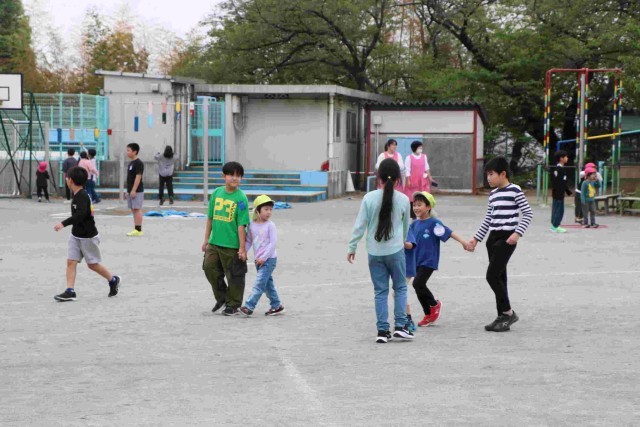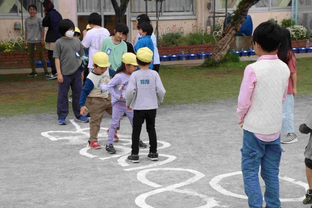 今日、園児と何をして遊ぶか、5年生はグループで事前に話し合いました。楽しんでもらえてよかったですね。