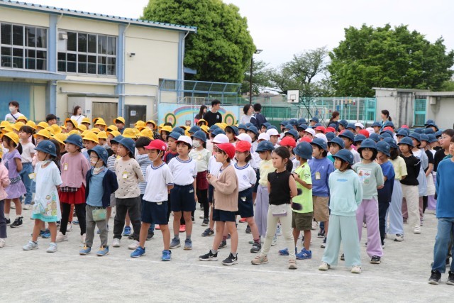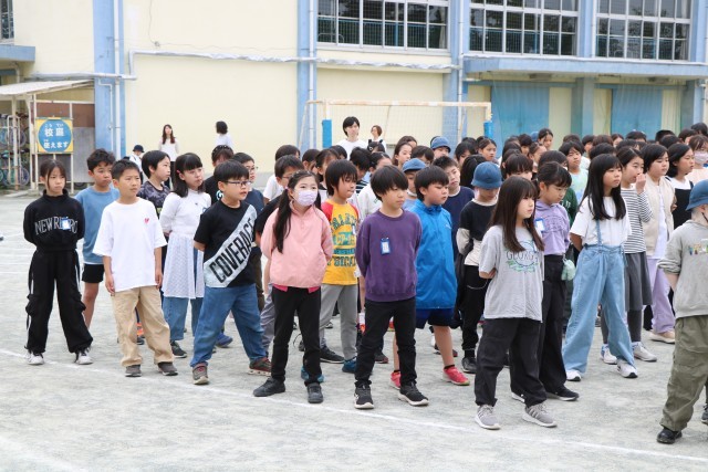 毎週月曜日の朝は全校朝会です。ランランランで気持ちよく走った後、息を整えながらクラスごとに整列します。次の行動に自然と体が動くだけでなく、気持ちを切り替えて静かに、本当に静かに並ぶことができることは砧小学校の自慢の一つです。