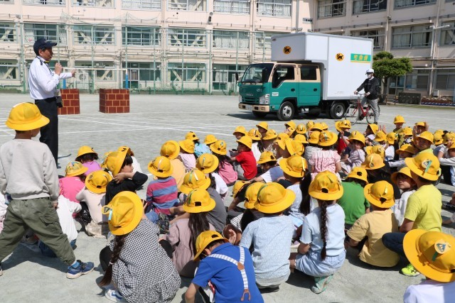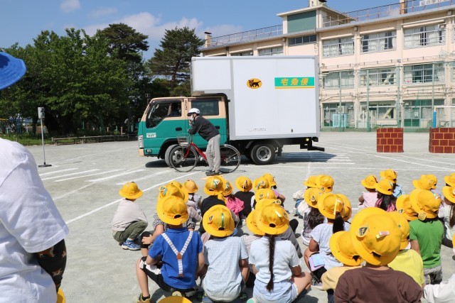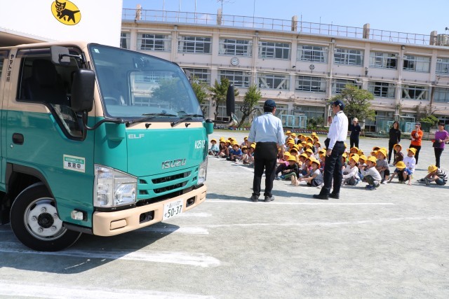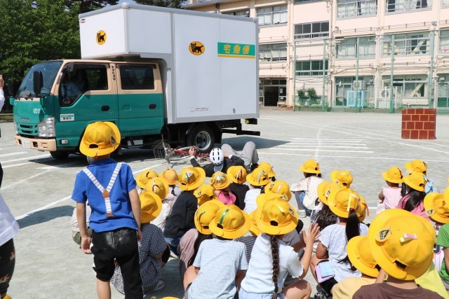 宅急便の業者の方に来ていただき、1年生が安全な道路の横断の仕方を学びました。