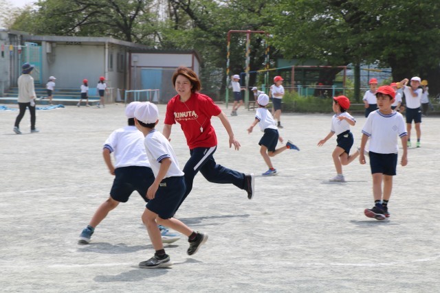 友だちと一緒に遊ぶことは楽しいです。先生も一緒に遊ぶともっと楽しいです。砧小学校では先生も一緒に遊ぶ「とも遊び」を推奨しています。遊びを通して子どもたちの教室では見られない一面を見ることもできますし、体力はもちろん、仲間と協力してやり遂げる力やコミュニケーション能力など、非認知能力も育まれます。砧小学校では外遊びをとても大切に考えています。