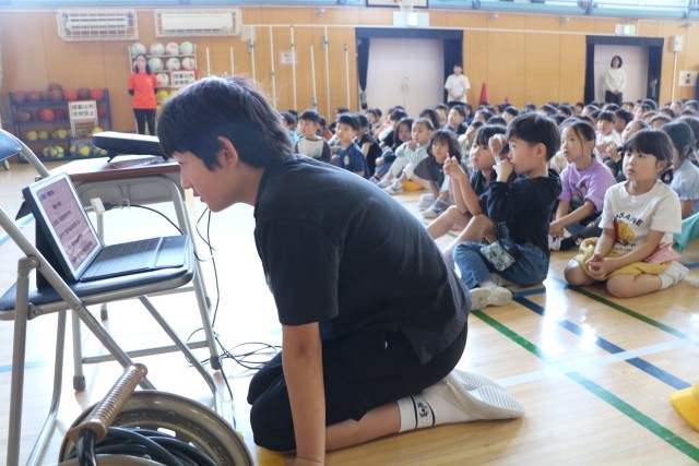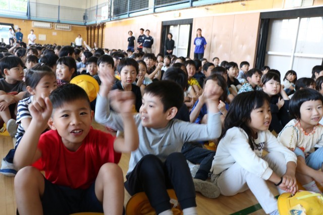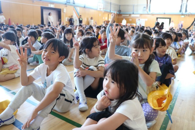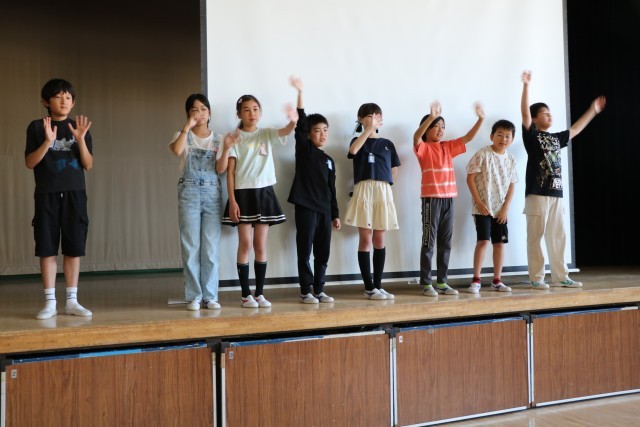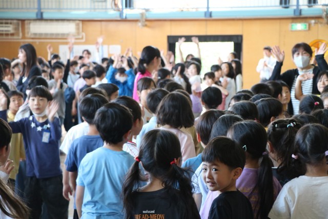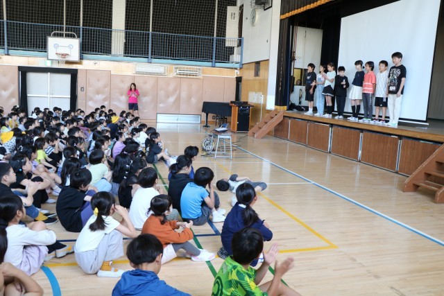 集会の最後には、楽しい集会を企画運営してくれた集会委員にたくさんの拍手が送られます。体育館を退場するときも、ふりかえって舞台に手を振ってお別れをします。砧小学校の子どもたちのすてきな場面です。