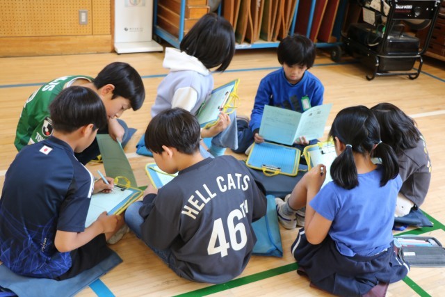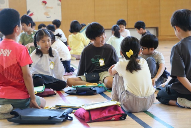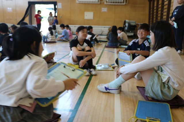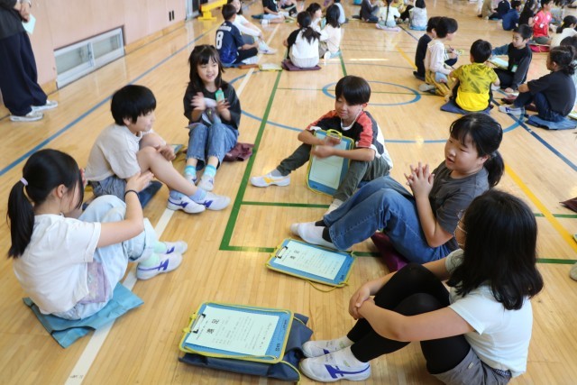 今日は3・4年生が遠足に向けて顔合わせをしました。来週は楽しみにしていた遠足です。これから中学年としていろいろなところで協力する3・4年生一緒に行きます。3・4年生の班で行動するので今日は名前を覚えるために自己紹介をしたり、どんな順番で回ろうか相談したりしました。