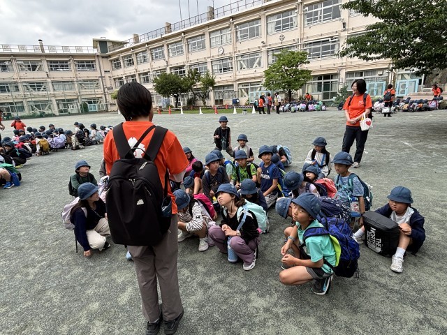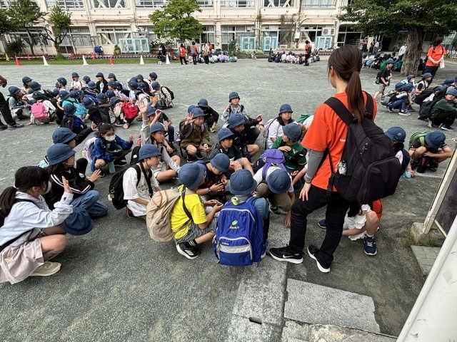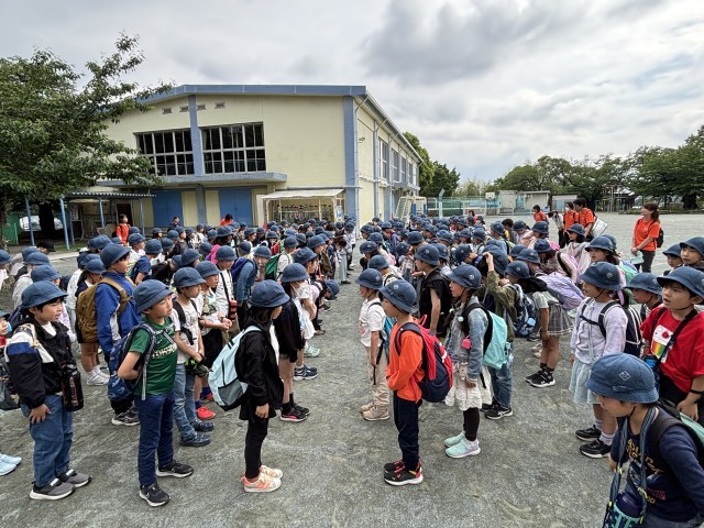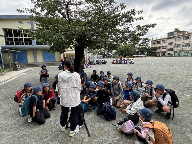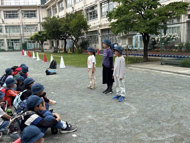学校に到着しました。帰校式は3年生が司会です。学級の絆、3・4年生の絆が深まり思い出に残る1日となりました。