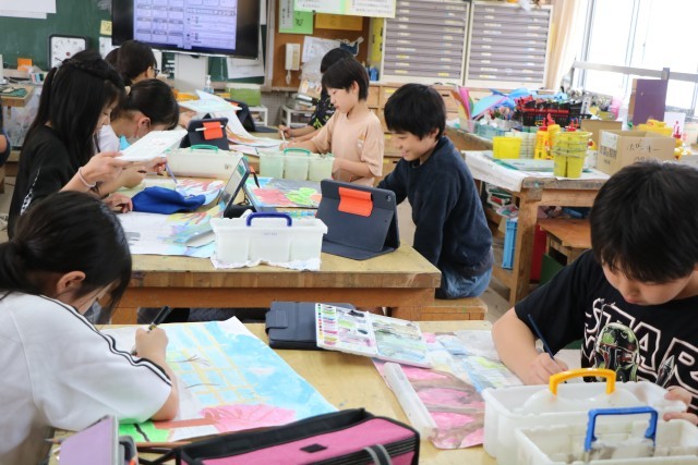 6年生は今週の日曜日、砧公園で開催される「緑化祭り」で初めての鼓笛隊発表です。朝早くからの鼓笛隊練習はもちろん、学習にも全力で取り組んでいます。図工の絵「砧小のおすすめの場所」もいよいよ完成です。タブレットで作品の記録カードを書き一緒に提出します。それぞれの思いが詰まった絵なので、絵を見ながらこのカードを読むと楽しいです。