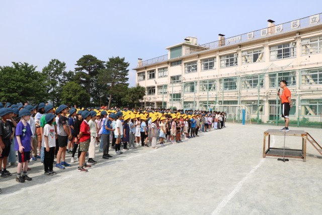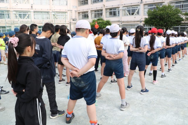 金曜日の朝は集会・朝会があります。今日は体育朝会がありました。安全に運動するために体育の学習ではいくつかの約束事があります。服装、髪の毛など全員で確認しました。その後、「前へならえ」や「休め」「体育座り」など、集団行動の姿勢や動きも確認しました。体育の授業で正しい集団行動を身に付けることで、安全に効率よく行動することができ、技術ややる気が向上するといわれます。砧っ子も一つひとつの取り組みをがんばっています。