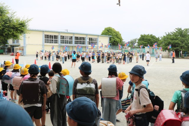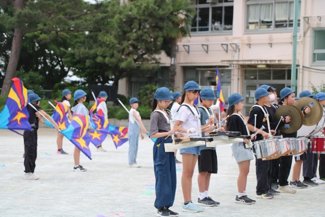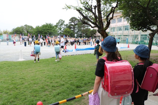 18日(日)緑化祭りにて11時30分より、砧小学校6年生の鼓笛隊発表があります。今日は最後のリハーサルです。5時間目が終わって下校する下級生も思わず足を止めて手拍子をしたり、フラッグをもっているマネをして一緒に手を動かしたりしながら見ています。
