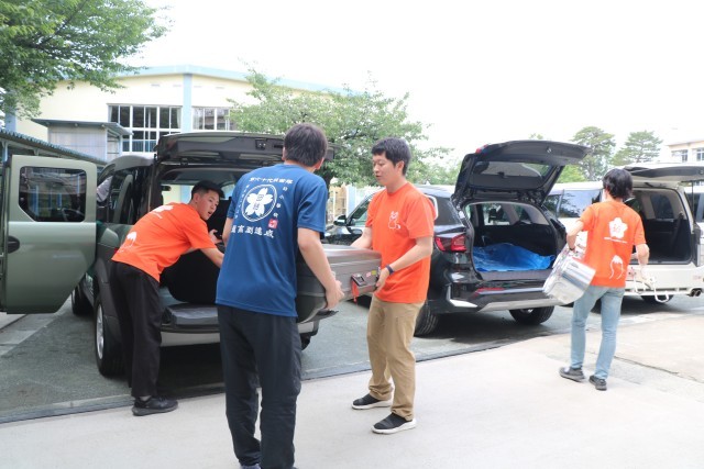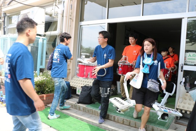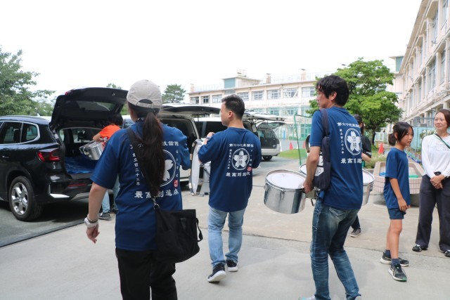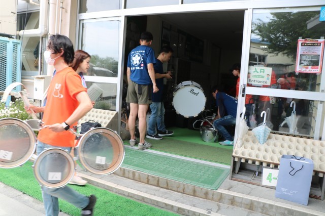 いよいよ緑化祭り本番です。朝早くからたくさんの車を出していただきありがとうございます。会場準備で車を出し入れできる時間をねらって、子どもたちより一足先に楽器を運び込みます。