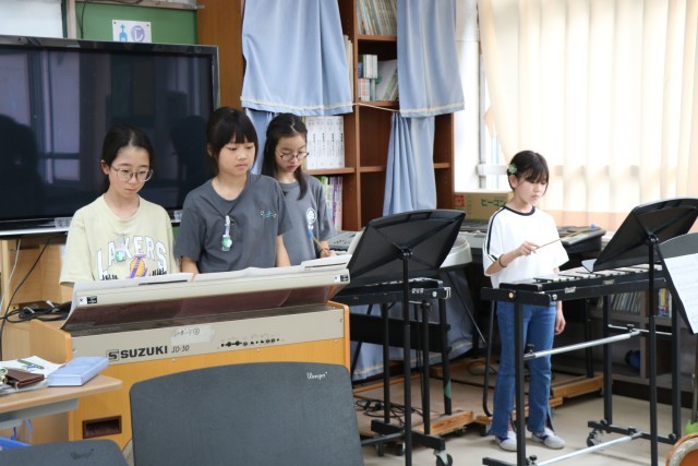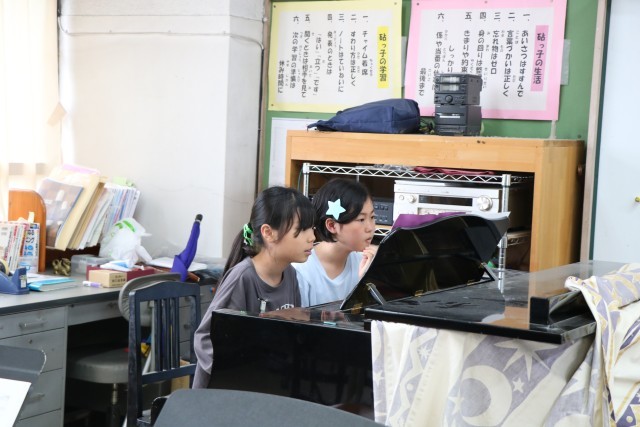 月曜日の6時間目は委員会やクラブ活動の時間です。委員会は56・年生、クラブ活動は4・5・6年生で行います。今日は今年度3回目の活動です。異学年と交流しながら活動したいという子どもたちの意見でグループを決めたり、活動内容も子どもたちのアイディアで進められたりします。写真は音楽クラブの様子です。