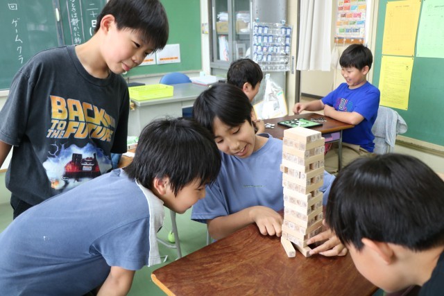 ゲームクラブは先生も一緒に楽しそうです。