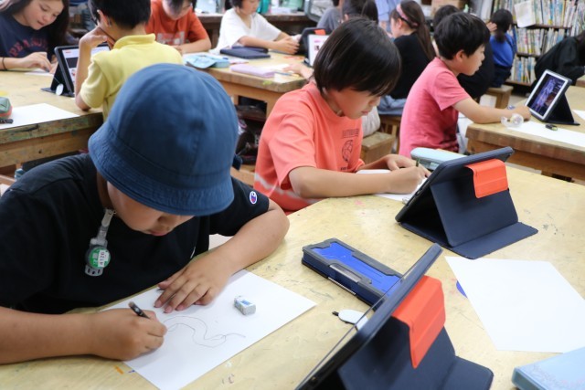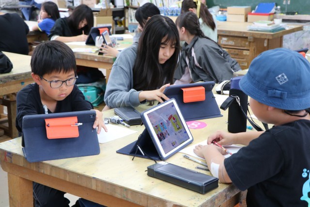 漫画クラブはタブレットで素材を探しながら描くことに熱中してとっても静かな雰囲気です。