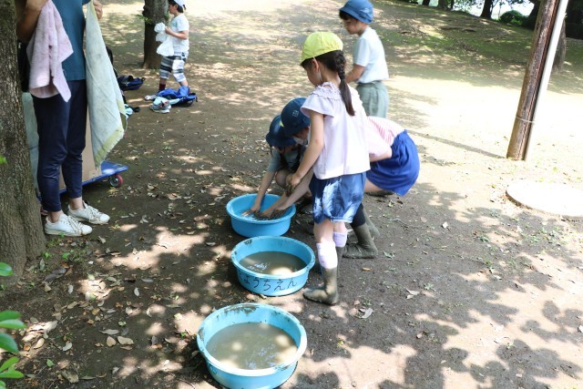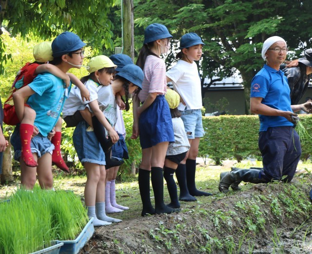 子どもたちがさっと手を洗いやすいように大きなたらいを園から運び込んで水を準備してくださった幼稚園の主事さん方、稲を今日のこの日に合わせて育苗させることも大変なうえに、今日のこの暑さの中一人ひとりに丁寧に田植えをご指導いただきました農協の皆様、たくさんの方にお世話になりました。ありがとうございました。