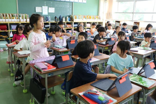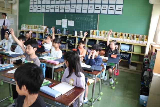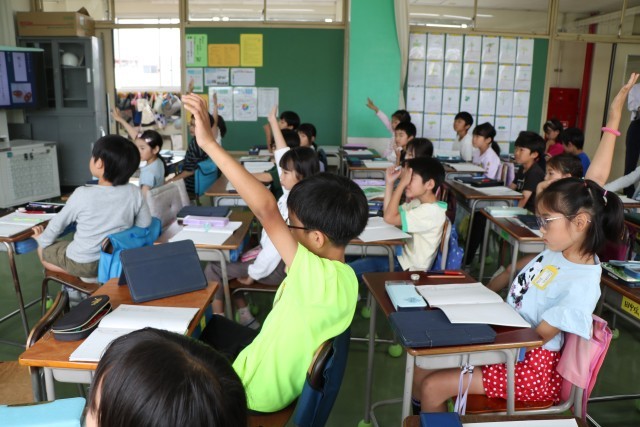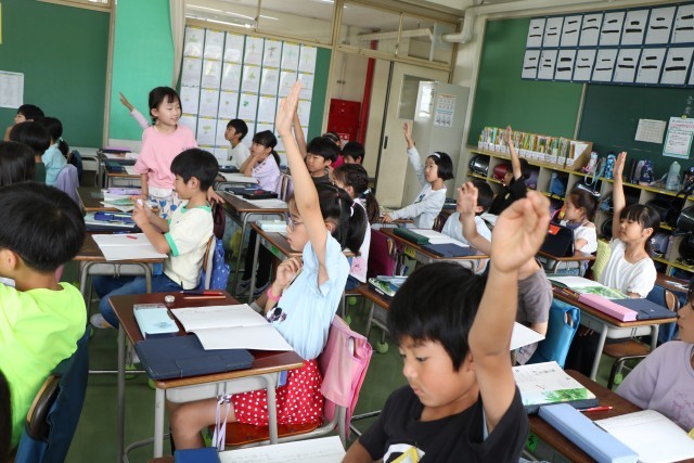 手を挙げて発言する様子、発言しているときも周りの友達はしっかり発言している子に注目して話を聞く様子に、子どもたちのやる気いっぱいの気持ちを感じます。