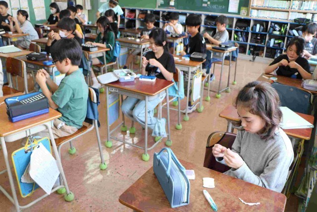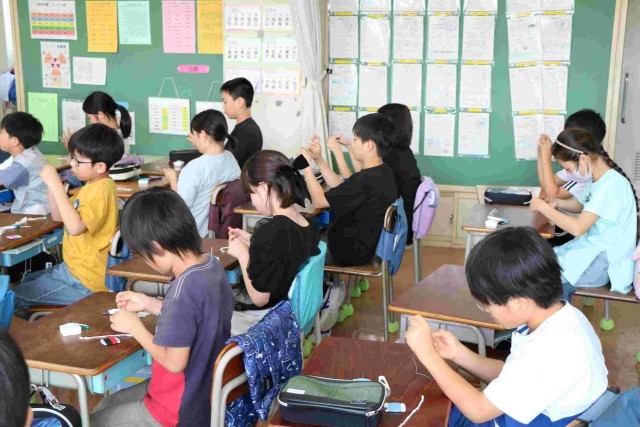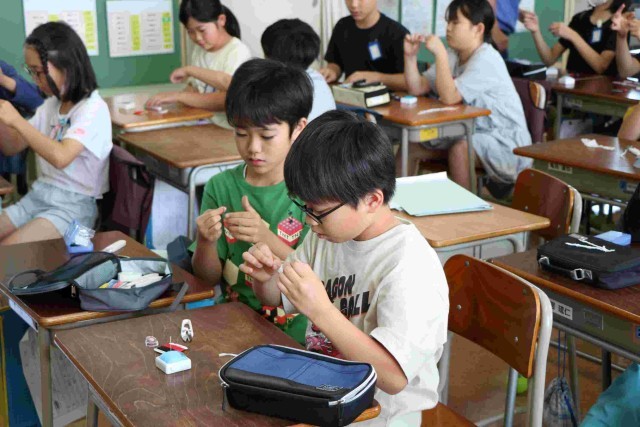 5年生の家庭科の様子です。玉結び・玉どめの練習をしていました。