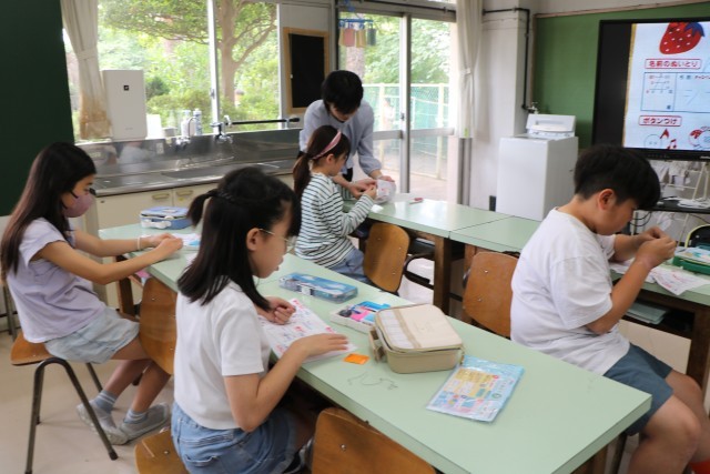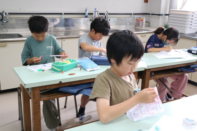 5年生家庭科の様子です。練習布を使って、ひたすら玉止め、玉結びの練習です。一生懸命やると、本当にみるみる上手になっていくのです。かわいいイチゴができました。