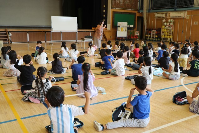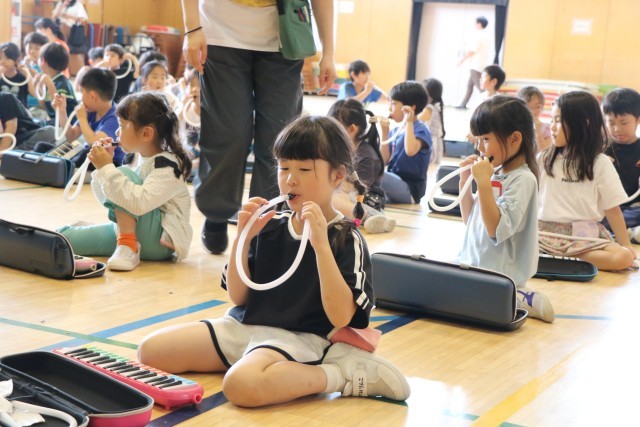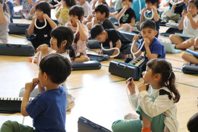 1年生音楽「鍵盤ハーモニカの使い方」の学習です。楽器専門の方を講師にお招きし、鍵盤ハーモニカの使い方の基礎を全員一緒に確認しました。新しい楽器が嬉しくて嬉しくて、ついつい音を出したくなってしまう子もいました。これからみんなですてきな演奏ができるといいですね。