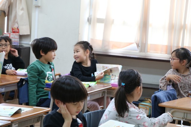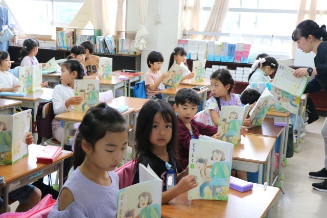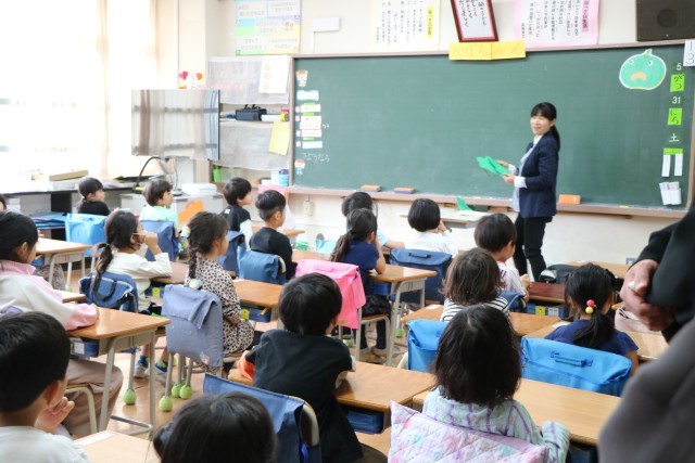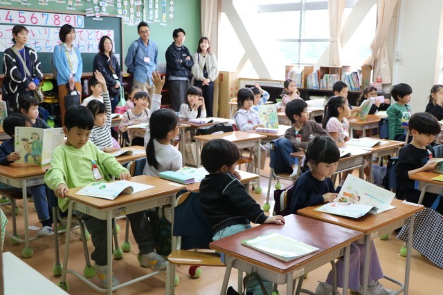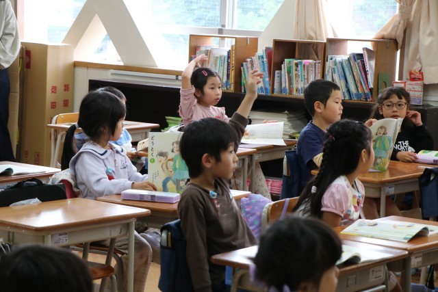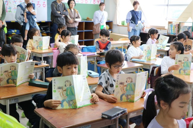 土曜授業の最後は、道徳授業と公開講座でした。写真は1年生の様子です。