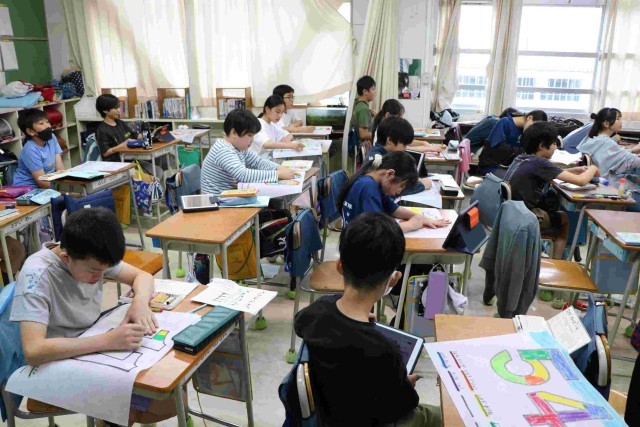 6年生の様子です。なかよし班活動に向けて、班長として、班の旗を作っていました。砧小恒例の姿です。