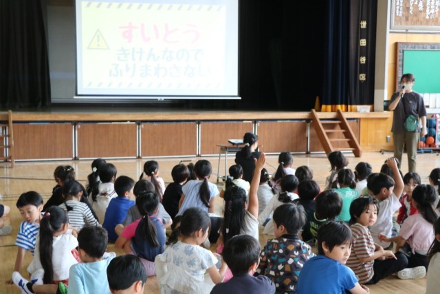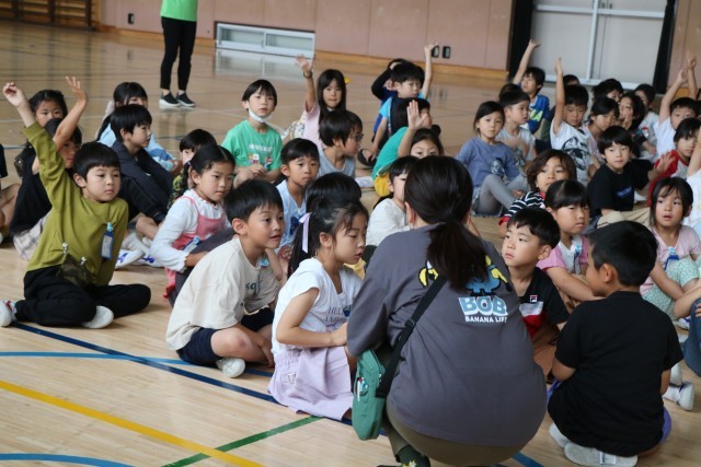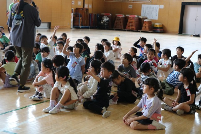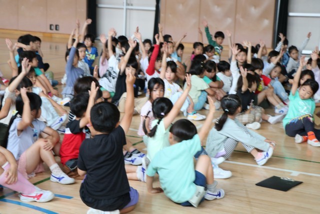 朝から整然と校長室の前を歩いて体育館に向かう1年生。とっても静かに今週の目標「廊下はね、右側静かに歩くんだ」を実践しています。体育館では学年集会を実施しました。6月に入り、保育園・幼稚園での生活の仕方と小学校はだいぶ違うことも経験してきました。大切な架け橋期を園での経験や教わったことをバージョンアップし、さらに安全・安心に落ち着いて学校生活が送れるように、毎日の生活、自分たちの行動を振り返りました。どうして決まりを守って生活しなくてはいけないのか?先生の問いに一生懸命考えながら話を聞く1年生です。