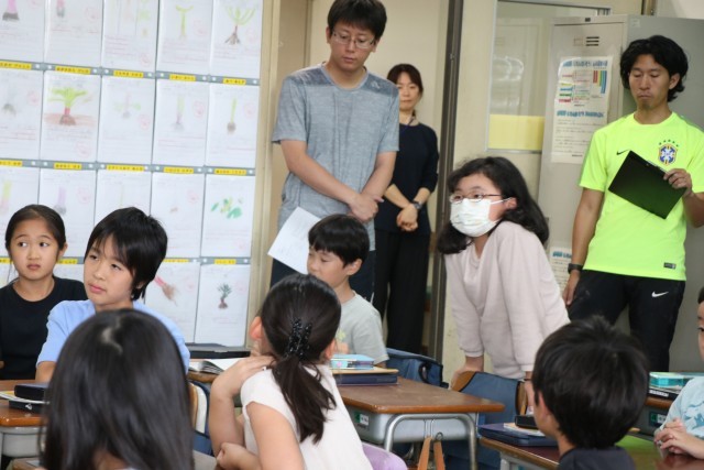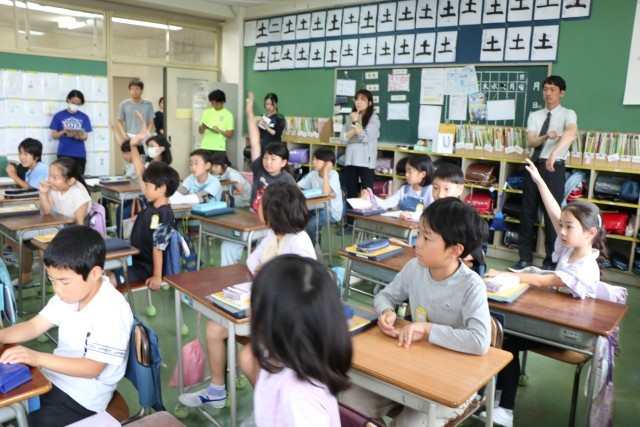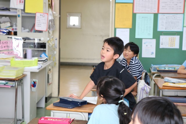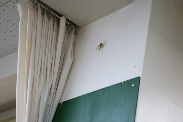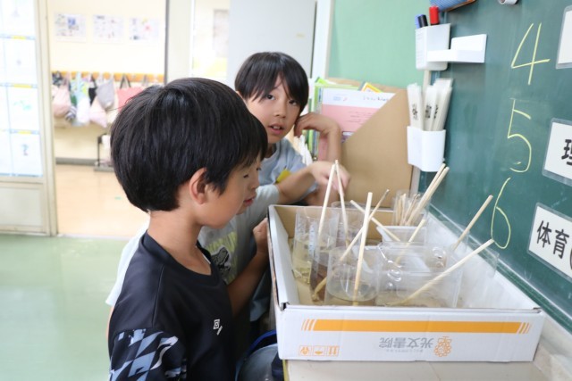 授業前の休み時間から教室に行くと、子どもたちが育てているヤゴがトンボになったという報告がありました。子どもたちは嬉しそうです。