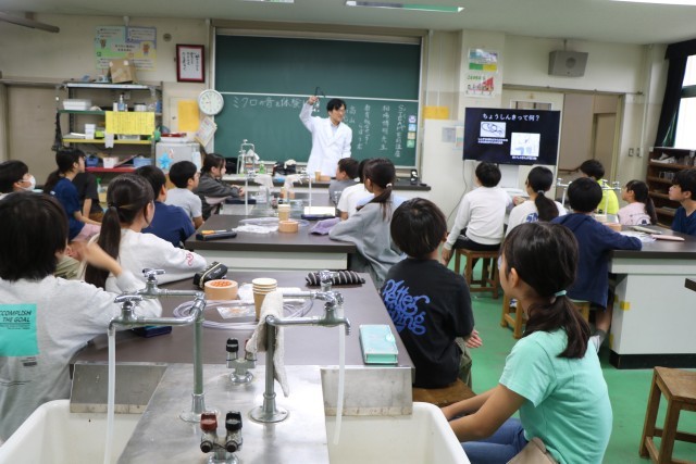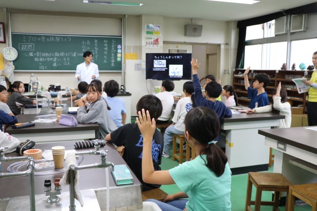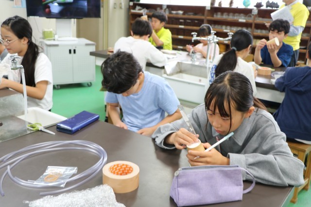 6年生理科の様子です。今日は世田谷区が展開しているstem教育の事業の一環として、ゲストティーチャーをお招きし「ミクロの音を体験しよう」をテーマにした学習です。様々な実験から、妥当な考えを導いたり、身近な自然現象に興味をもち自ら調べようとしたりできるようになることがねらいです。