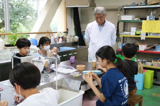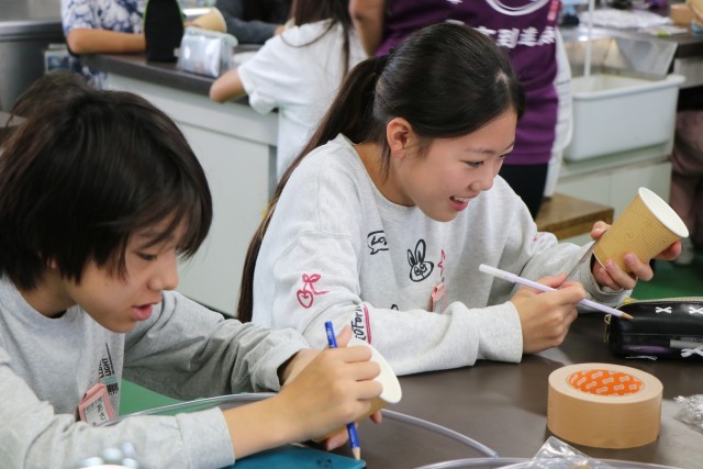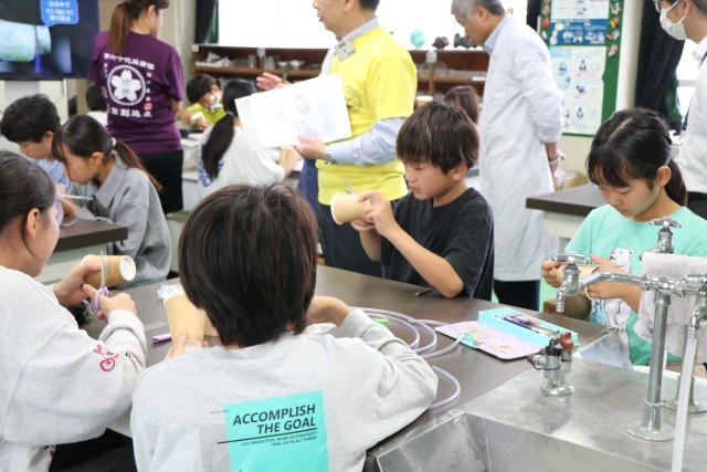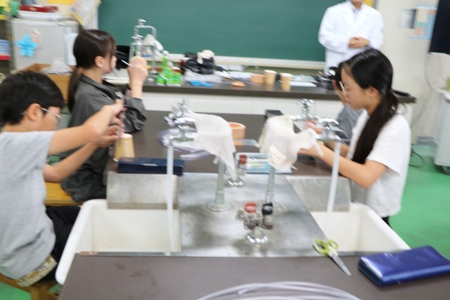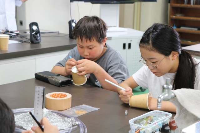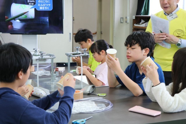 予想をして話し合い手作り聴診器の作成に取り掛かりました。