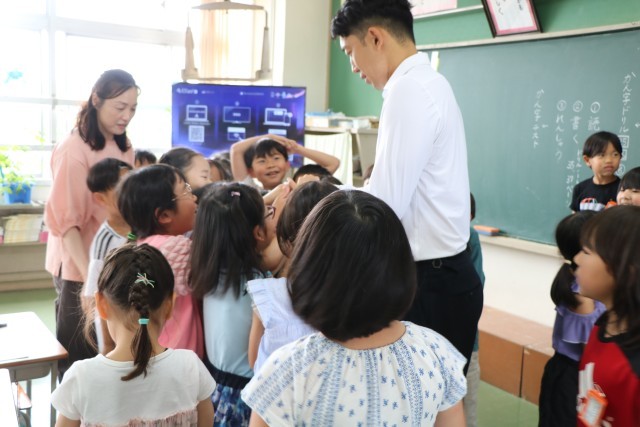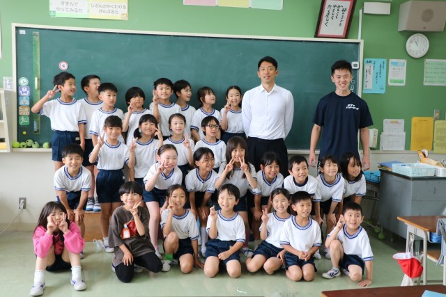 砧小学校では教科・生活を通して、子どもたちが「なりたいじぶんになるために」必要な基盤となる能力や態度を育ててほしいと、「キャリア教育」に取り組んでいます。今日はその一環として、ゲストティーチャーに権田修一選手が来校してくださいました。