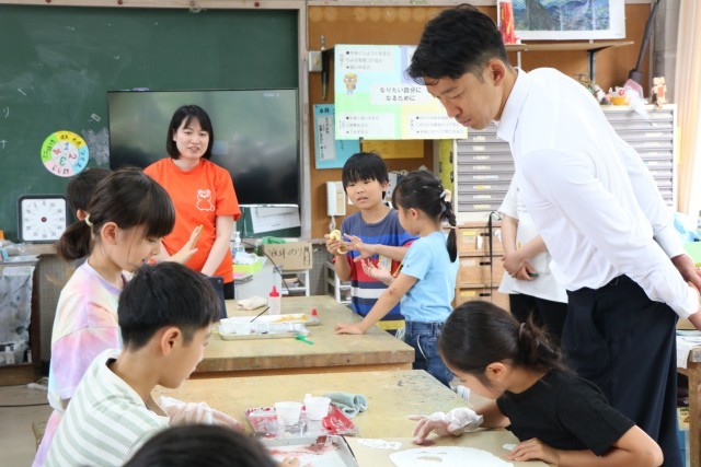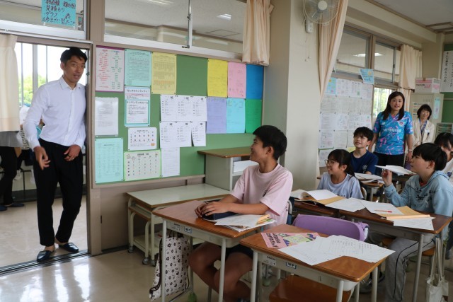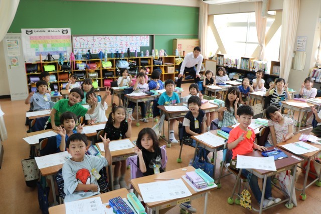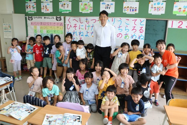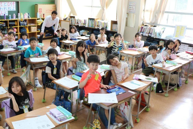 まずは全クラスを回り、砧っ子の学習の様子を見ていただきました。子どもたちは大喜びです。学習を中断して一緒に写真を撮ってほしいとお願いするクラスもあったり、もう写真撮影の隊形に並んで待っているクラスもあり、どのクラスでも熱烈大歓迎でお迎えしていました。