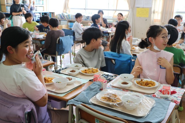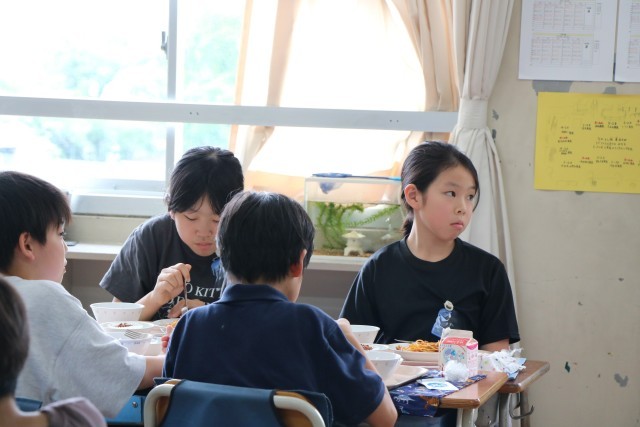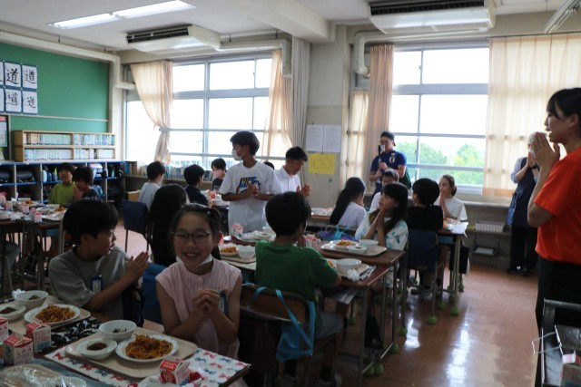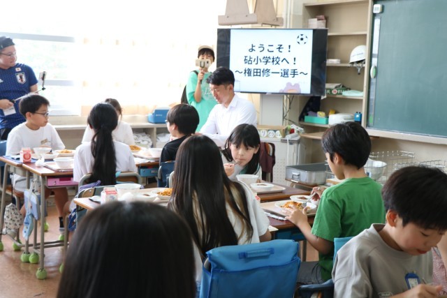4時間目が終わり砧小学校の自慢のおいしい給食を、5年生の子どもたちと一緒に食べていただきました。食べながら「いいよ。質問して」と言ってくださり、子どもたちは素直な疑問や質問をたくさん投げかけていました。質問するだけしてあとは食べながら聞いている5年生ではありません。権田選手も一つ一つ誠実に、そしてとっても子どもたちが身近に感じられるようなお答えなので、質問した子たちは食べるのも忘れて真剣に聞いていました。権田選手を身近に感じながら、今の自分たちにできること、前向きになるお話をたくさん聞くことができました。