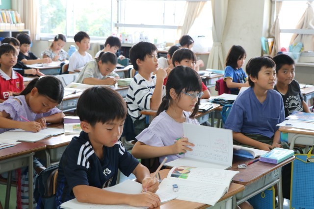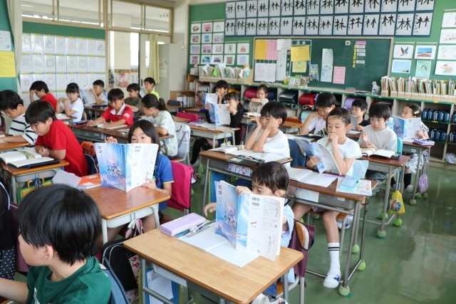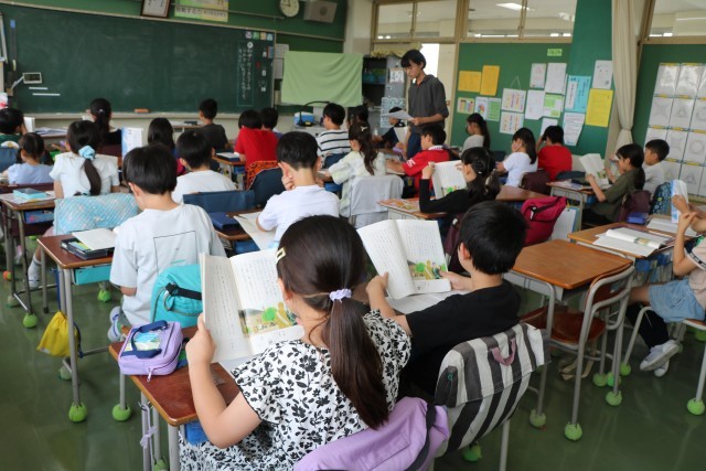 4年生国語「ちいちゃんのかげおくり」の様子です。物語のどの場面も味わい深い教材ですが、今日は特にお父さんが戦地へ出発する見送りの場面です。子どもたちは丁寧に文章を何度も読みながら、お父さんの気持ちやちいちゃんの様子を想像していました。