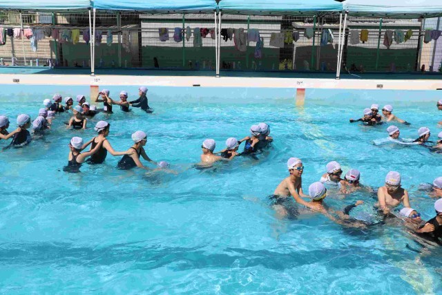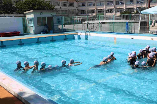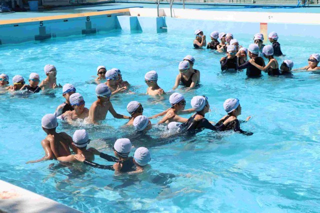 最後にご褒美で、じゃんけん列車をしました。楽しく、長~い列を作って、今日の水泳指導は終了です。