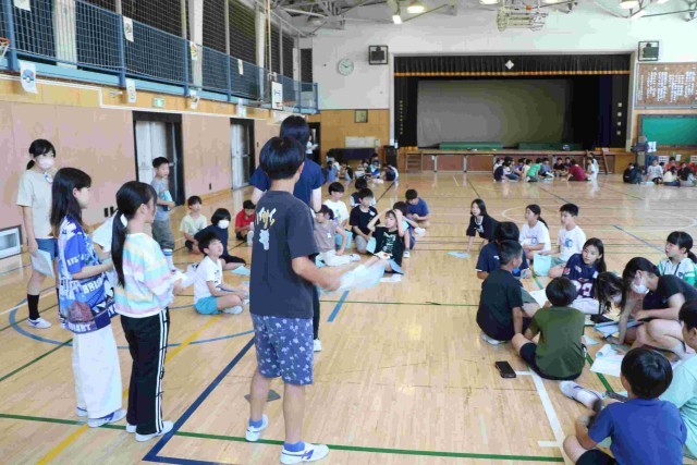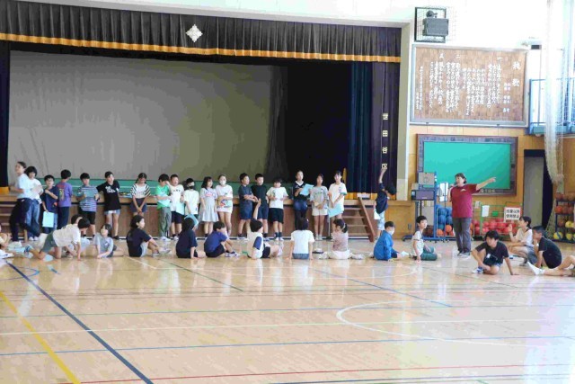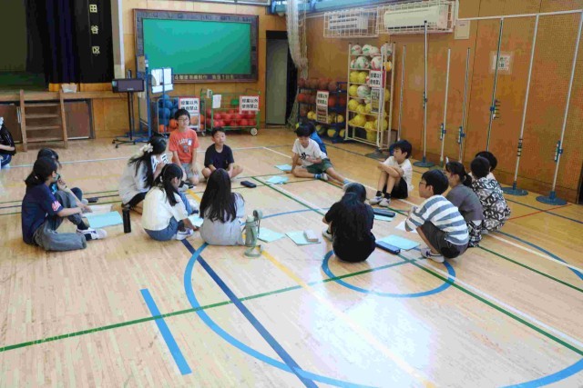 今日は体育館に集合して、キャンプファイヤーの確認や、係の最終打ち合わせをしていました。