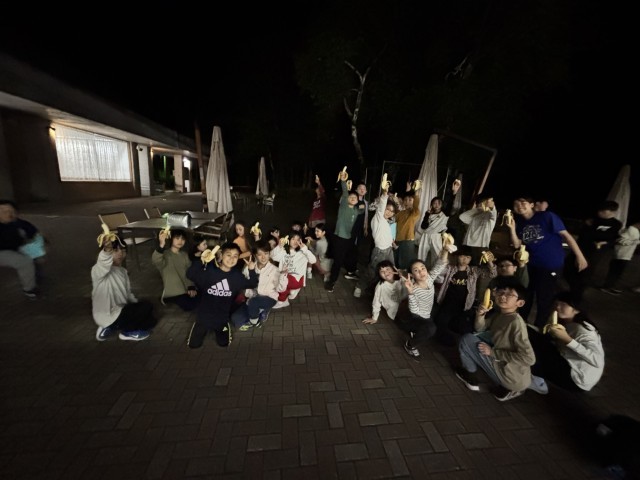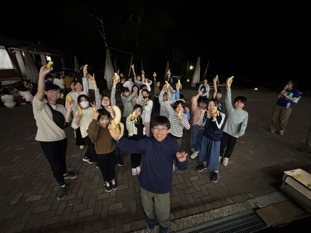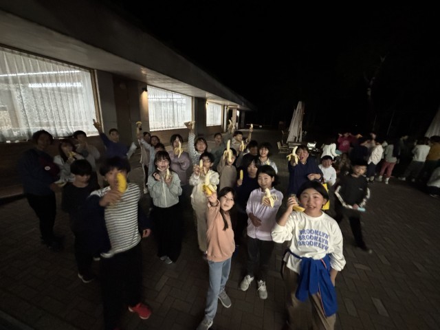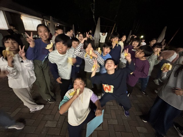 キャンプファイヤーが終わってから、バナナをいただきました。バナナでこんなに盛り上がれるとは。何をやっても友達と一緒なら楽しい!そんな5年生です。