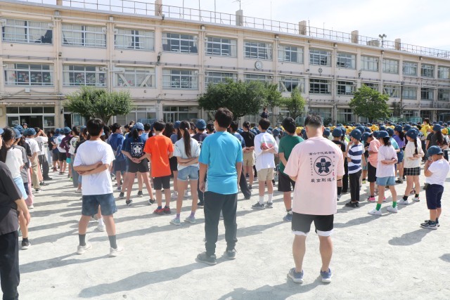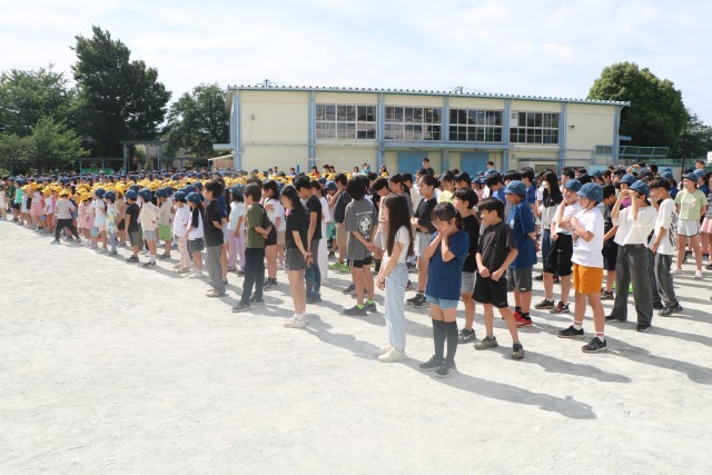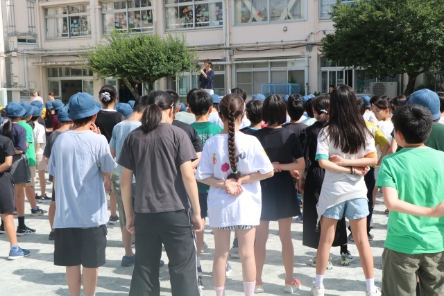 月曜日の朝は全校朝会です。マイクの調子が悪かったのですが、看護当番の先生が朝礼台の上に立つと自然と注目し静かになるところが砧っ子のすてきなところです。朝礼台の上に上がった先生は「静かにしましょう」とは言いません。子どもたちがすでに静かに整列しようと頑張っているからです。そんな、日々の当たり前のことを当たり前にやろう!という話をしました。