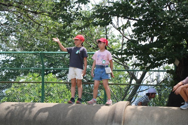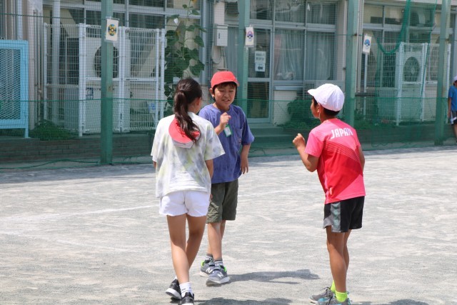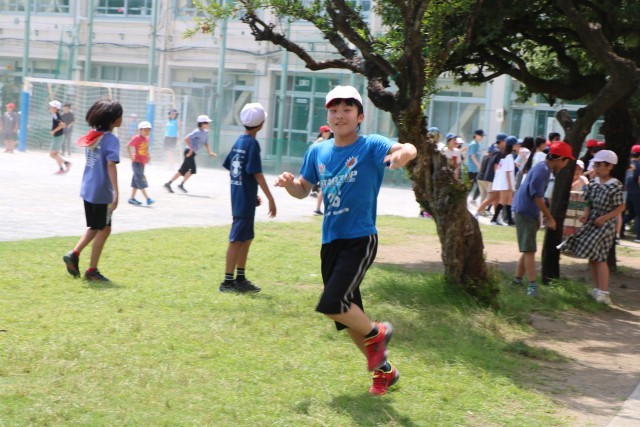 今日の昼休みは4・5・6年生のロング昼休みです。WBGTの数値を見ながら、外遊びを実施しています。子どもたちの大好きな鬼ごっこも、走り続けることがないようルールを工夫したり、日陰で休憩したり、水分補給したり、安全に遊んでいます。
