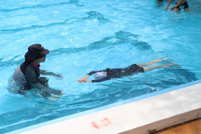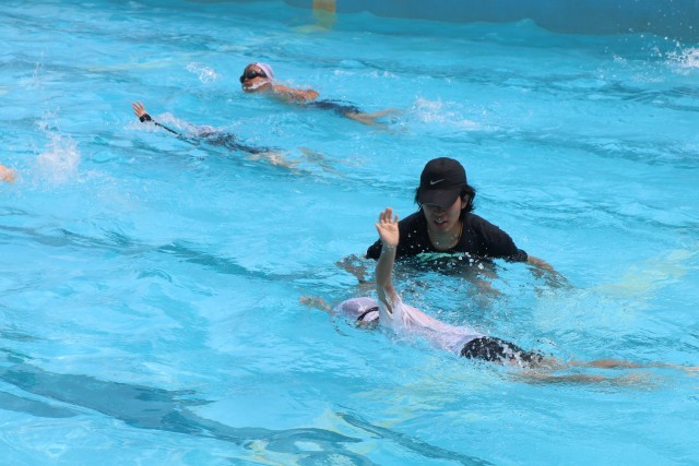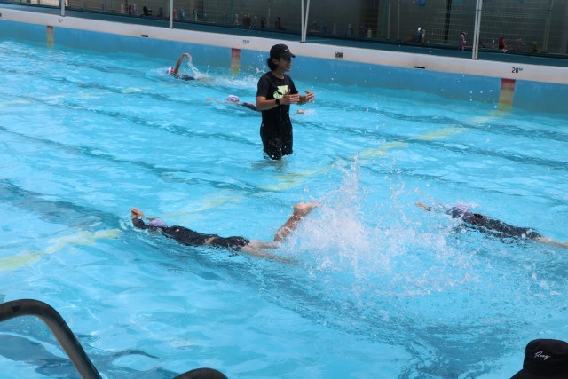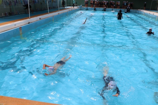 水分補給をしてから、級別練習です。先生たちも水の中で、たくさんアドバイスをしてくれます。