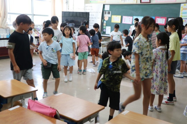 1年生は早めに給食の後片付けを済ませ、4年生が来るのを楽しみに待っていました。4年生も張り切って、そして少々緊張しながら・・・1年生のお迎えです。優しくエスコートする姿に、高学年の仲間入りだなあと強く感じます。
