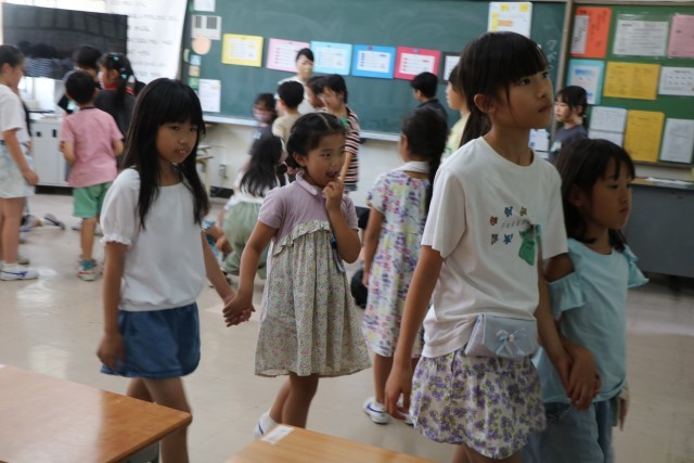今日の昼休みは1学期最後のなかよし班遊びです。今日から4年生が1年生のことを迎えに行きます。