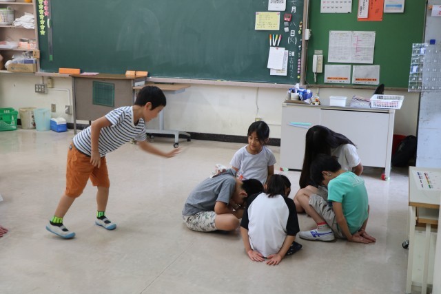 相談がまとまったらさっそく遊びの開始です。ハンカチ落とし、だるまさんが転んだ、だるまさんの一日、王様ジャンケン・・・・色々な遊びで楽しんでいます。